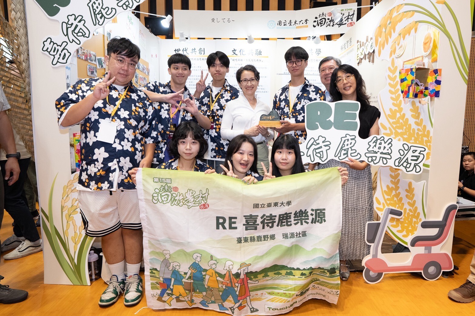 「RE喜待鹿樂源」團隊利用暑假兩個月期間前往臺東縣鹿野鄉瑞源社區駐村,以樂齡共學、世代共創、文化共融以及科技智慧為核心理念,整合多元族群記憶與在地故事,將社區廢棄空間重整再造,成功打造成為「瑞源的遊樂園」。指導老師陳盈如表示,團隊透過綠色照顧理念的實踐,不僅活化閒置空間,還為社區帶來跨世代交流的新活力,讓長輩的生命故事、孩子的純真笑容與科技智慧相互串連共譜出新世代對農村永續的責任與熱情。