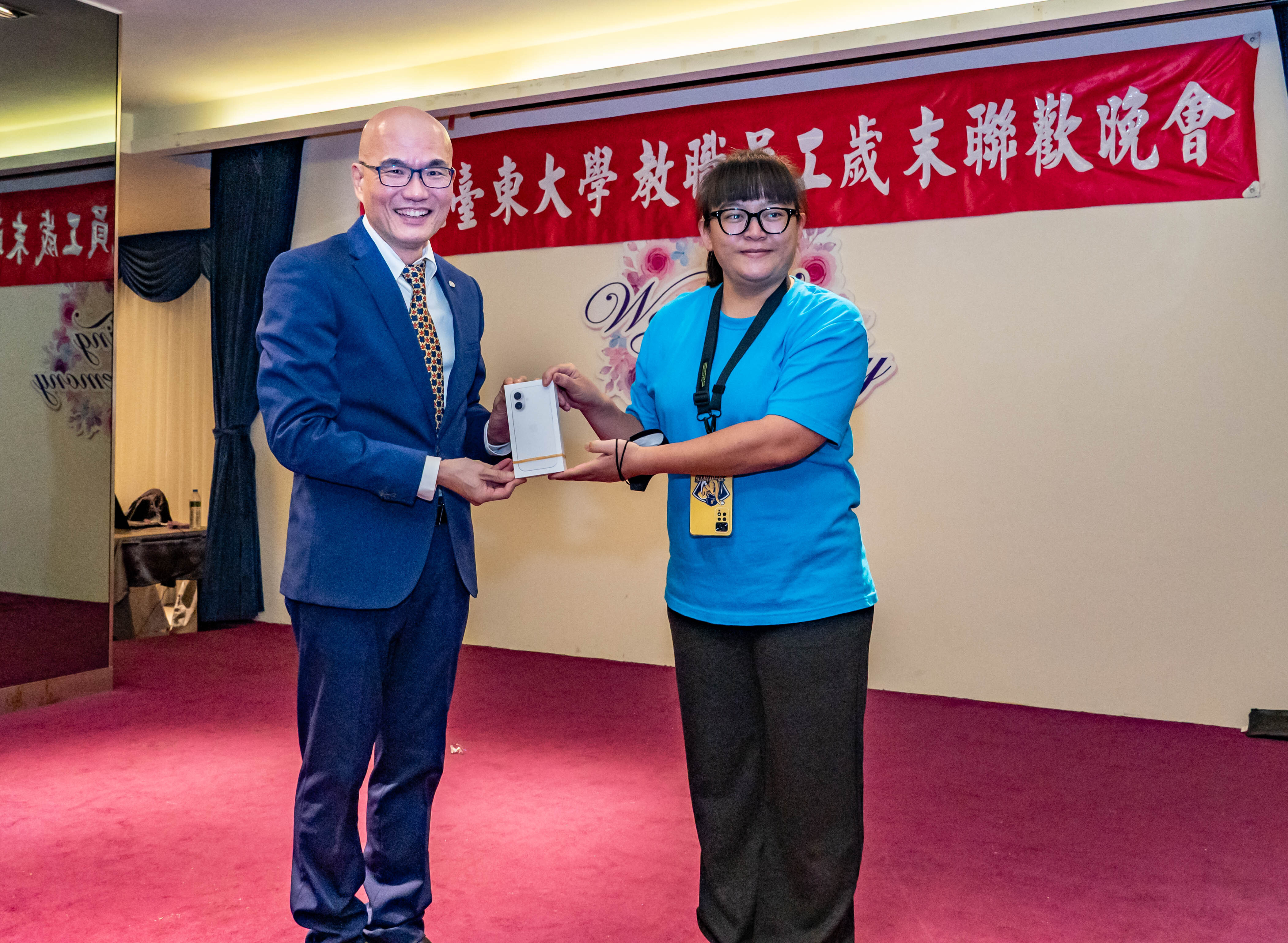 本校於115年1月7日晚間,假娜路彎大酒店舉辦「114年教職員工歲末聯歡餐敘晚會」,邀集全校教職員工及退休同仁齊聚一堂,以歡聚熱鬧的氛圍共迎新年,感謝彼此一年來在教學、研究、行政與服務的付出與努力。