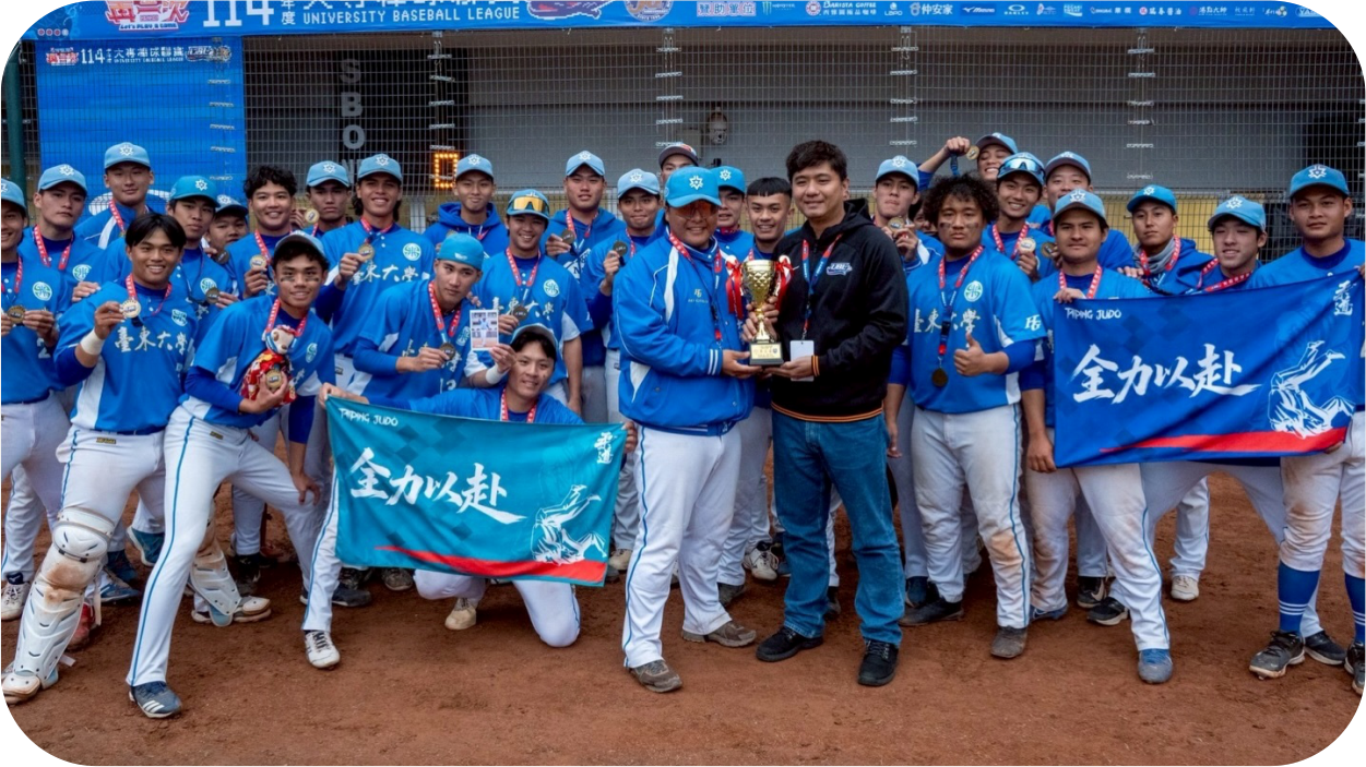 本校棒球隊於115年1月19日在新北市三重棒球場進行的114學年度大專棒球聯賽公開組一級季軍賽中,以6比5驚險擊敗臺灣體育運動大學,成功奪下季軍獎座。勝利投手為先發5.2局的競科系大四投手許少捷,他在最後一場大專聯賽中展現堅韌意志,帶領球隊完成這趟意義非凡的季軍之旅。詳全文