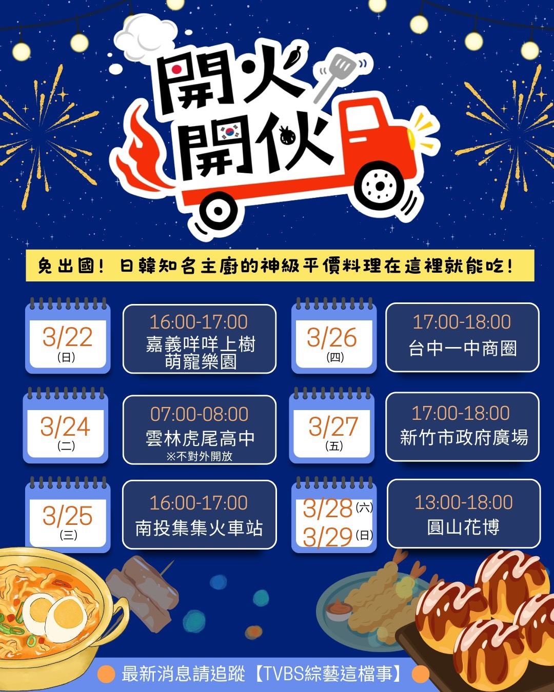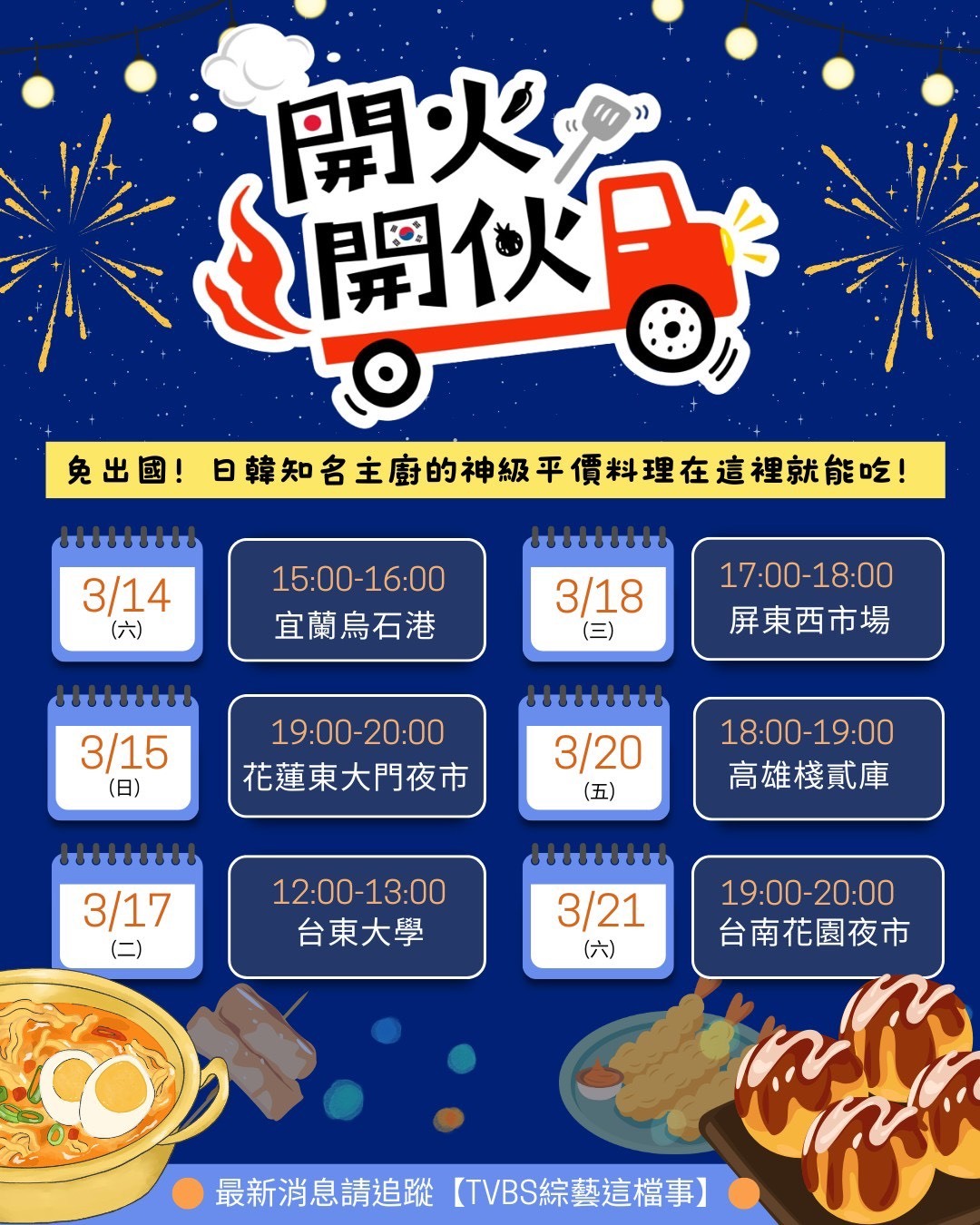 料理競賽外景實境節目《開火開伙》,3月13日起將開著餐車17天走訪12個城市,運用在地食材創作全新料理。