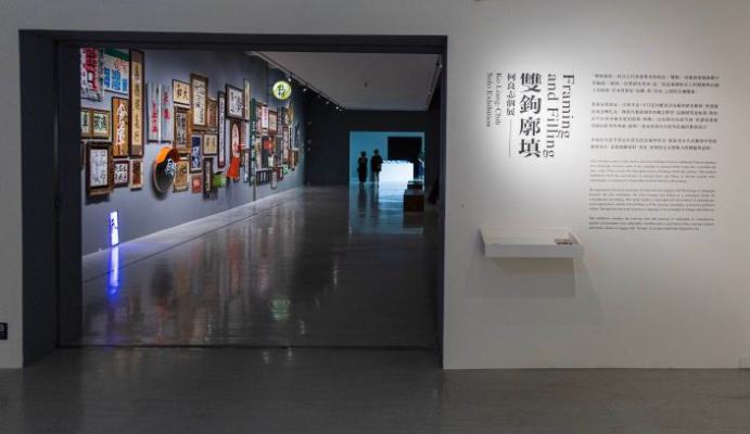 展覽名稱「雙鉤廓填」取自書畫技法中「先勾輪廓、再行填墨」的古典工序 ,柯良志老師巧妙借用這一傳統技法,不僅回應書法技藝的歷史脈絡,更將其轉化為當代藝術創作的概念模型。透過此命名探討對社會表象的描摹,以及對內部荒謬的省思與填補。