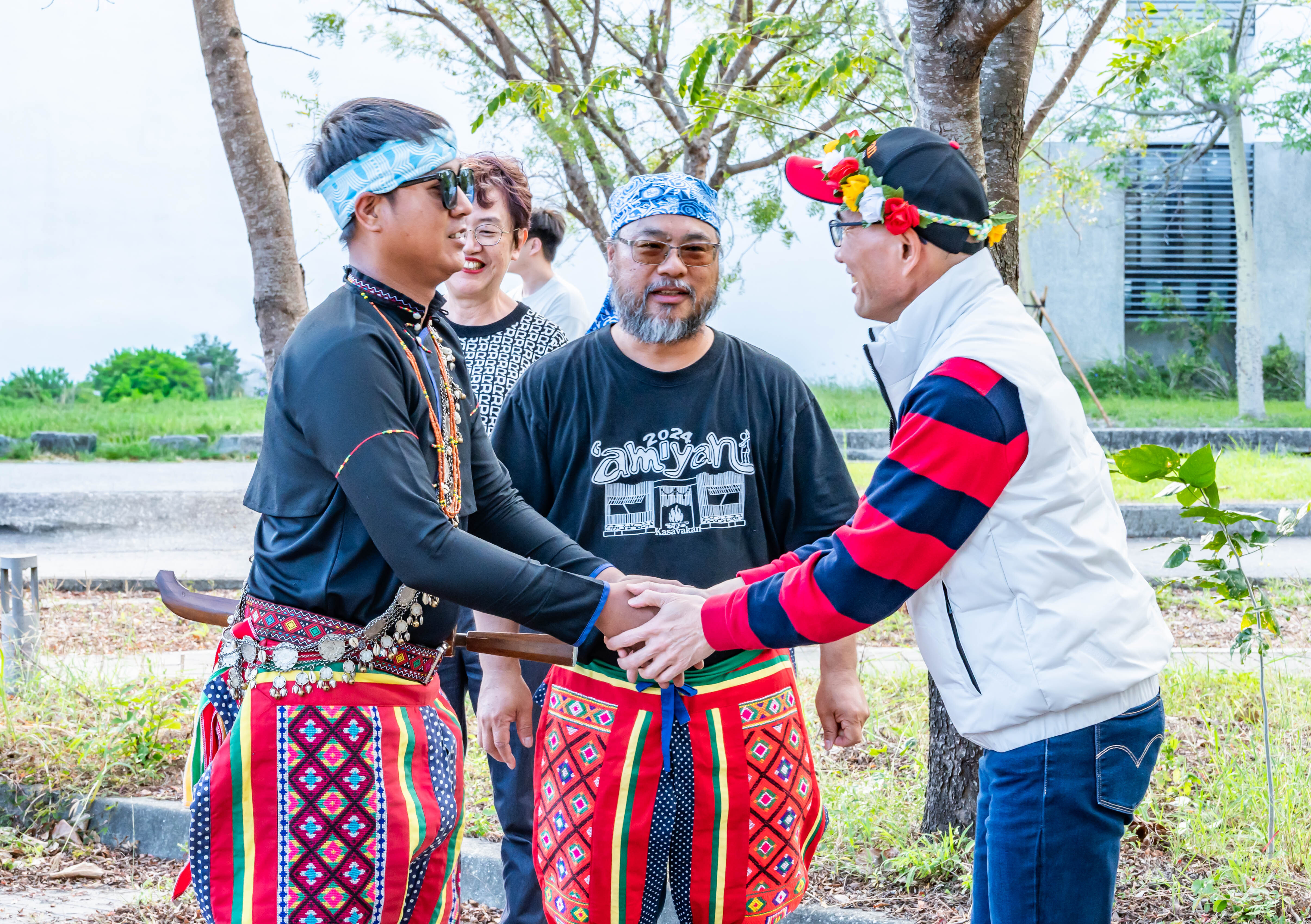 繼去年由鄭憲宗校長親自在校園迎接報訊隊伍,成為本校遷校以來首位出面接待報訊儀式的校長後,今年再度延續此一重要而深具象徵意義的流程,讓部落族人深刻感受到校方對原住民族文化的尊重與重視。報訊儀式中,鄭校長以臺東大學一家之主的身分,接受族人為其佩戴象徵祝福的花環,具體展現大學與部落共融共好、攜手前行的決心;校長亦依循禮俗致贈飲料、檳榔等傳統禮物,向部落年祭表達誠摯祝賀,以行動回應族人的善意。
