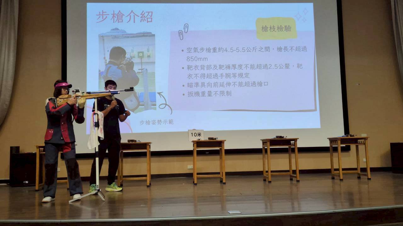 活動以歷年回顧影片開場,呈現競科系從107年競技學程時期至今的發展軌跡。專題發表則由射擊隊透過動態展示介紹射擊運動,讓現場師生更深入認識此專業競技項目。