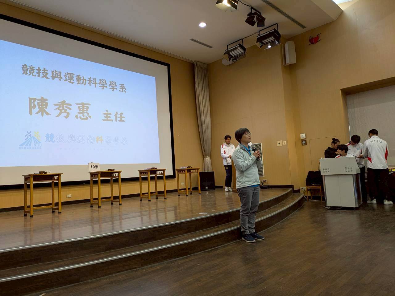 競科系主任陳秀惠致詞時表示,每一屆都由大二全體學生擔任籌備小組,在過程中學習辦理活動、溝通磨合與團隊合作。發表會將競技運動訓練和比賽內容轉化為寶貴的運動科學知識,每次發表都是學習機會,從師長同學的問題中反思精進。這些不完美正是最珍貴的學習養分,讓學生從大一開始累積經驗,不斷進步成長。