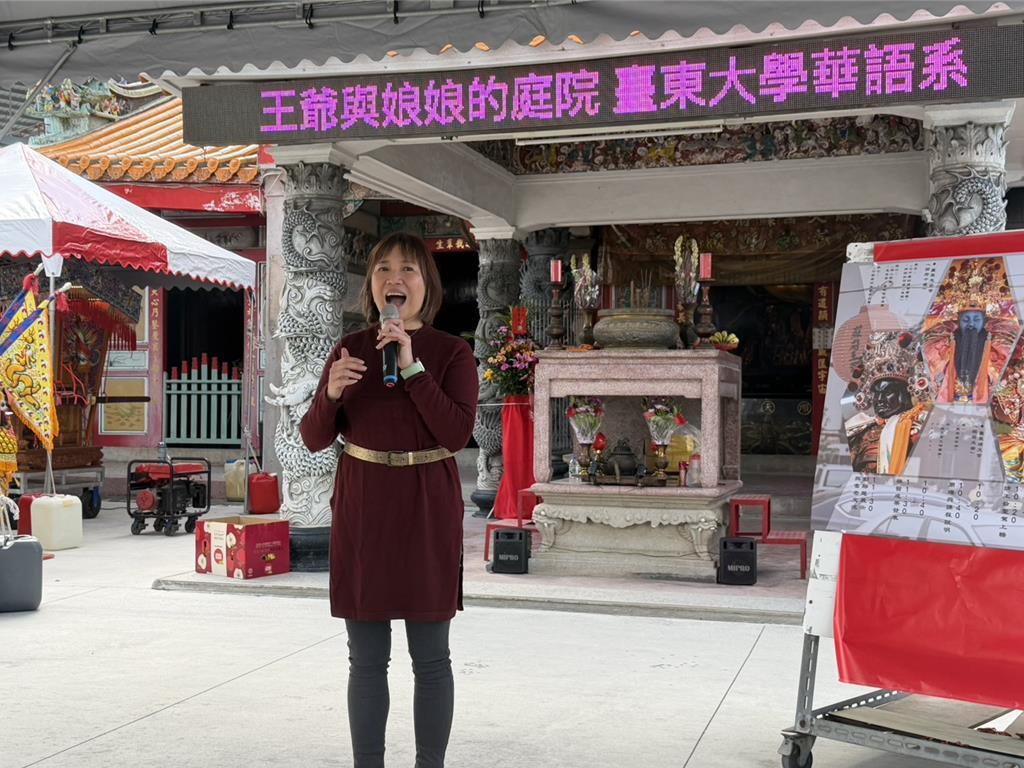 國立台東大學華語文學系今日在台東順天宮舉辦期末成果發表會。(蔡旻妤攝)