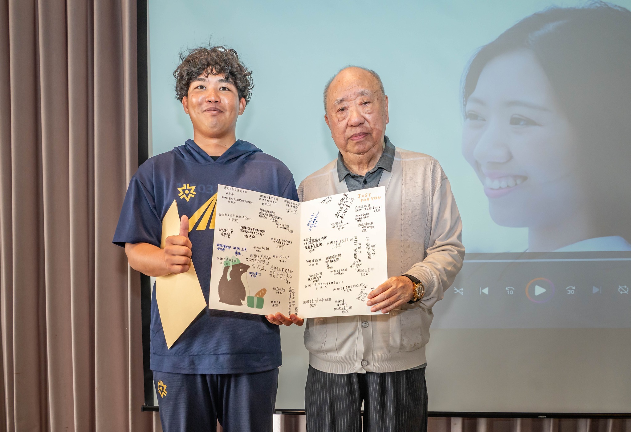圖說:棒球隊隊員致贈感謝卡片予王總裁
