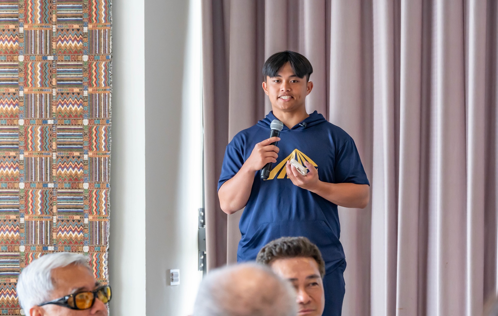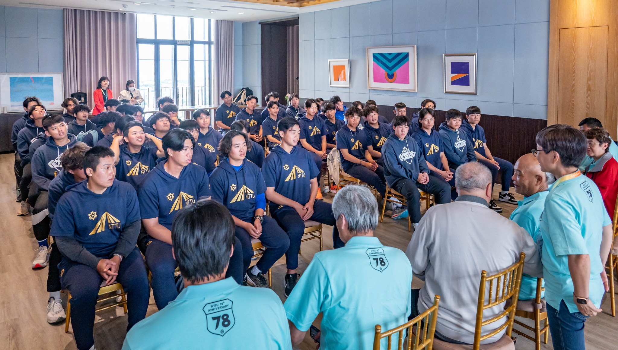 餐會尾聲,王任生名譽博士特別向棒球隊勉勵。他以臺東奧運英雄楊傳廣為例,指出運動員的價值不僅在於打出好成績,更在於走出自我高度、發揮社會影響力;並以企業經營的觀點提醒學弟們:「球,要打到兩個手套接不到的地方,才能贏得勝利!」為提昇球員在場上的表現,他特別委託本校公關中心為每位球員添購球鞋,展現了大學長對後輩的殷切關懷。