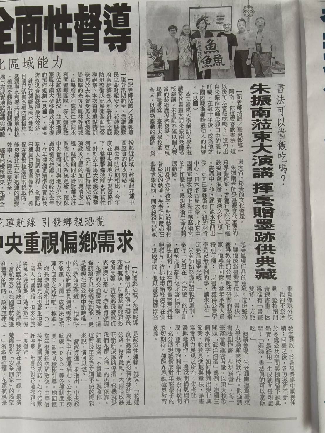 報導來源:書法可以當飯吃嗎? 國際書藝名家朱振南蒞臺東大學演講(20260412 台灣新生報)
